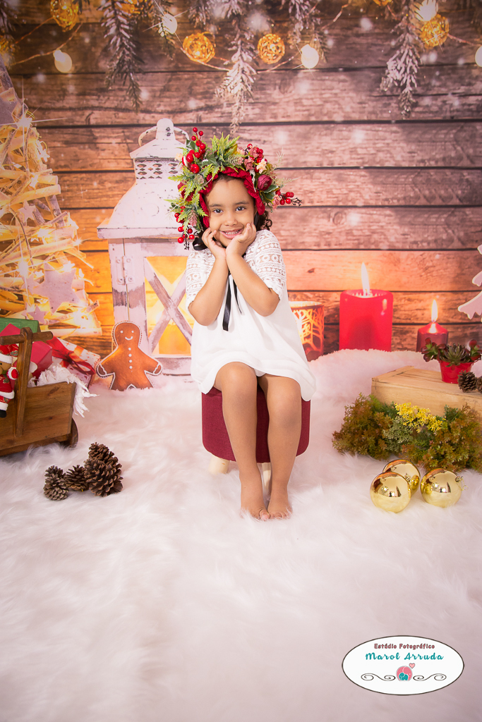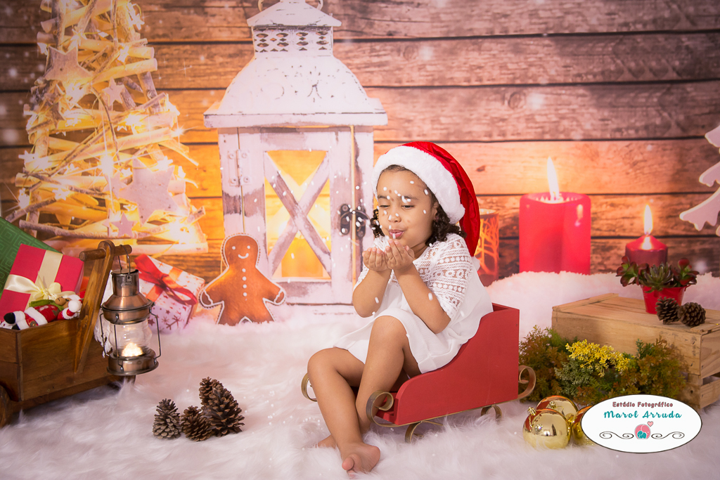Sofia em seu ensaio natalino no Estúdio Marol Arruda, ela amou a neve e curtiu muito esse momento de pura descontração.